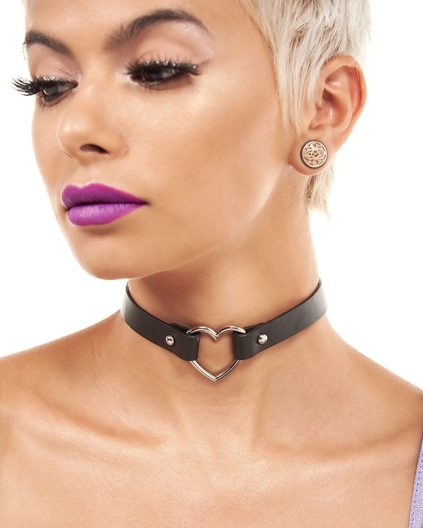 When you’re sexy and sweet. Our Sweetheart Bondage Ring Choker is made of black faux leather and features a small metal heart in the center. Pair this super cute black necklace with just about anything.