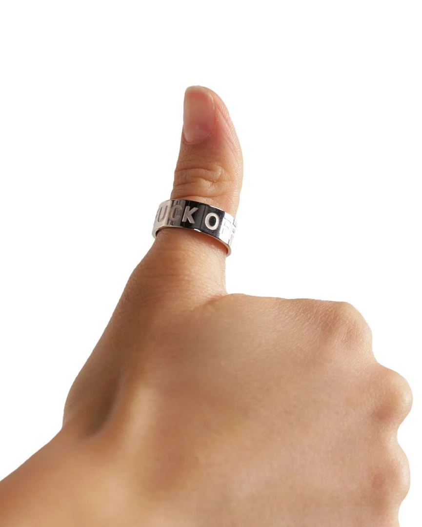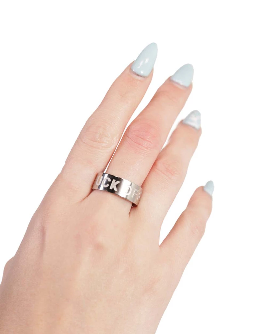 Ward off bad vibes with the F-Off Ring. This hypoallergenic ring has a thick band with the words “F*ck Off* written on it.