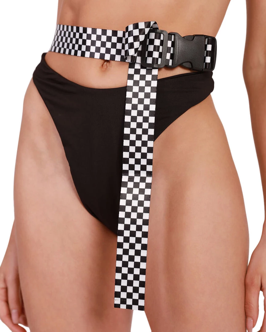 Live ur best cyber rave girl life with our Touch Move Checkered Speed Clasp Belt. This belt is complete with a striking checkered print and a speed clasp closure, perfect when paired with any of our bottoms.