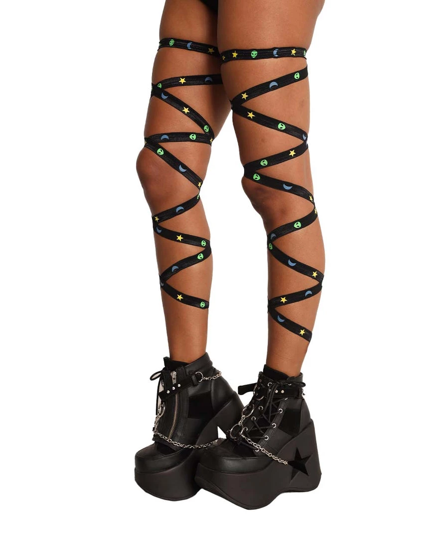 Get weird AF in our Alien Quest Neon Leg Wraps. These leg garters are made from a breathable and stretchable material with neon accents all over.