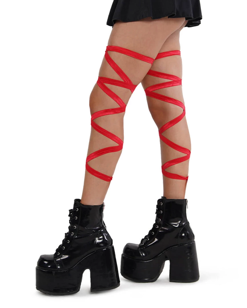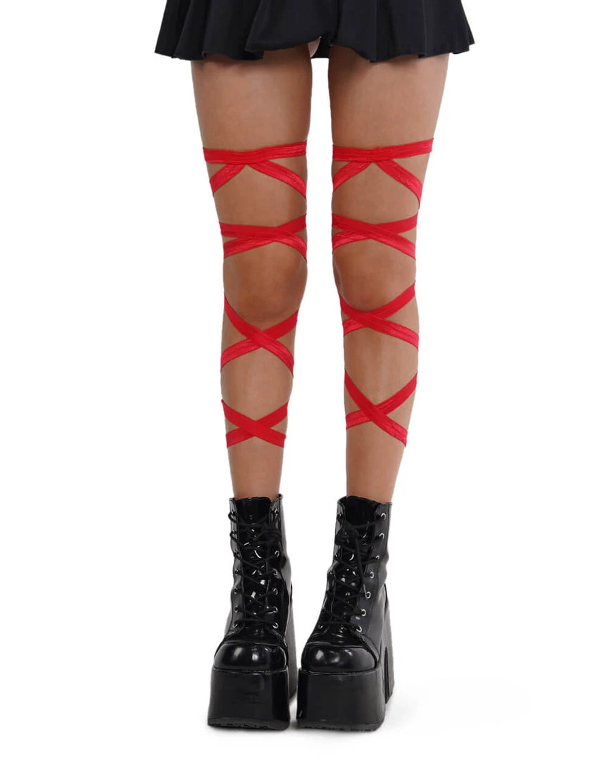 Details: Our new non-slip leg wraps are lined with a silicone lining inside to hug your thighs and stay up all night while you’re dancing away. These leg wraps are now sold in pairs! These leg wraps will add more texture, color, and character to your legs whether you are wearing fishnets, nylons, or fluffies.