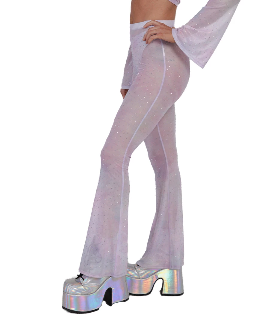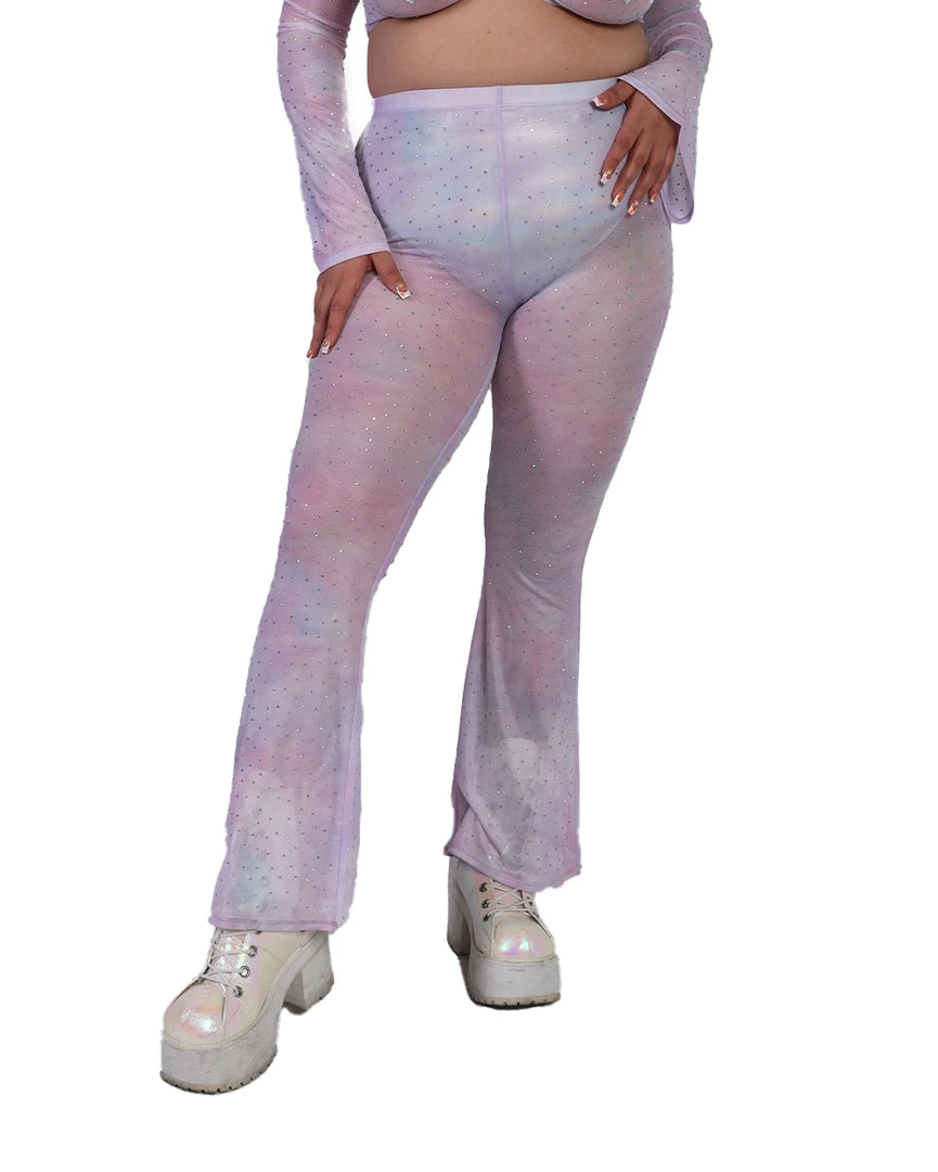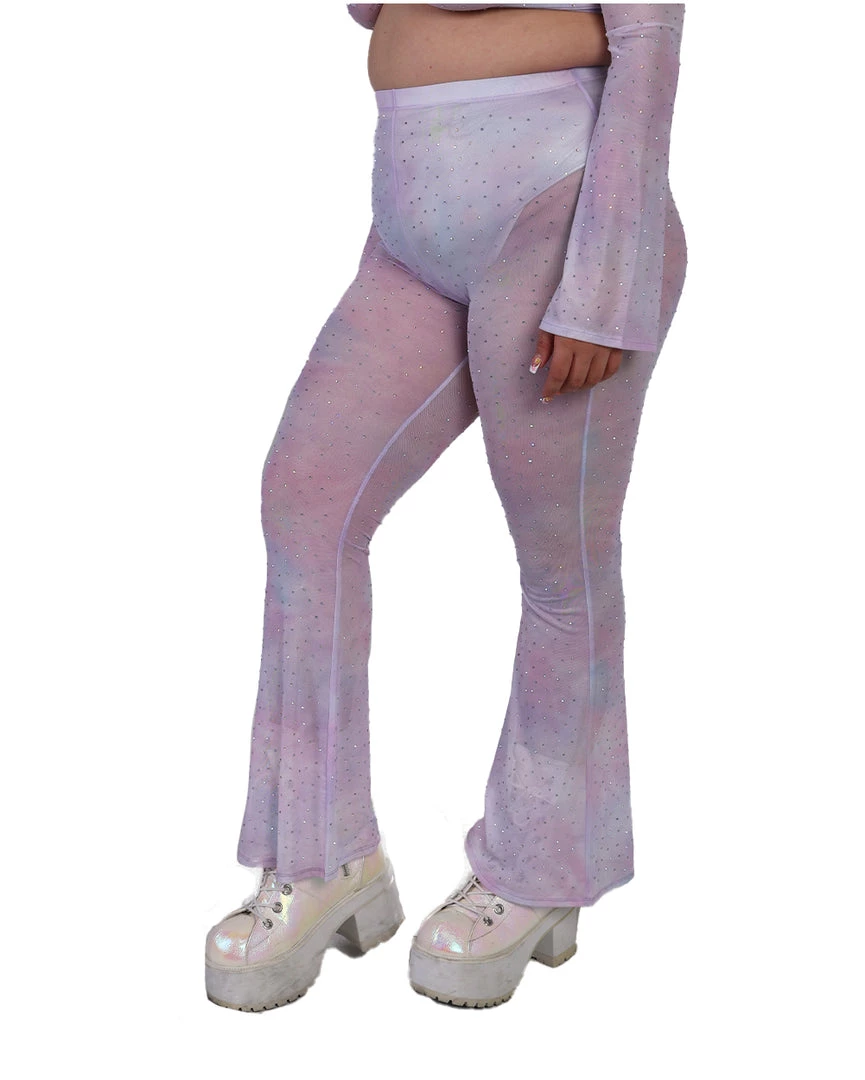 Our Daydreamin’ Mesh Bell Bottoms will have u feeling like you’re floating in the clouds, thanks to its flowy see-through material. These mesh pants feature a high-waist silhouette and flare design at the bottom.