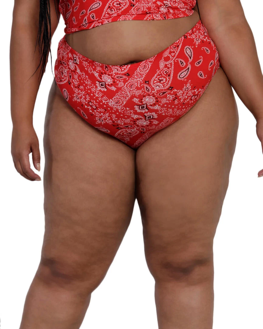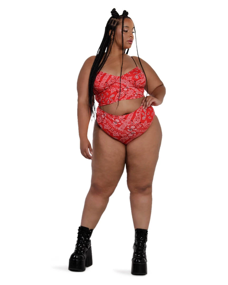 It’s all about the pretty-in-bohemian feels with the Paisley BB High Waisted Bottoms. These red high-waisted booty shorts and their matching top look bomb AF when finished with a good pair of thigh-high platform boots.