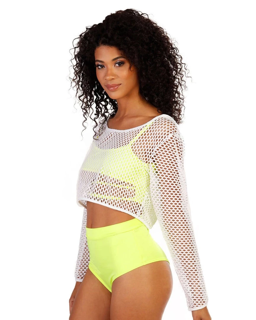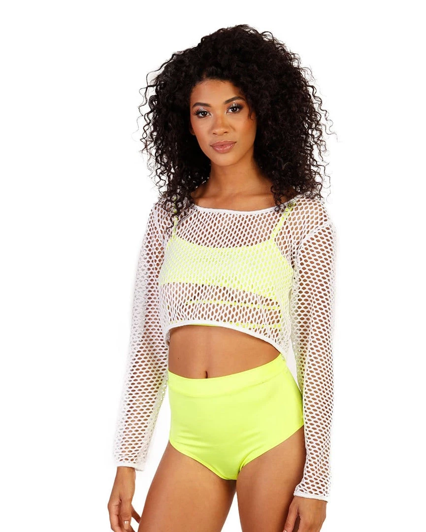 Our Bad Decisions Fishnet Crop Top will have you looking and feelin’ good. This black fishnet crop top has a relaxed fit, with long sleeves and a stylish hood all in one. What more could you want in a rave shirt?!