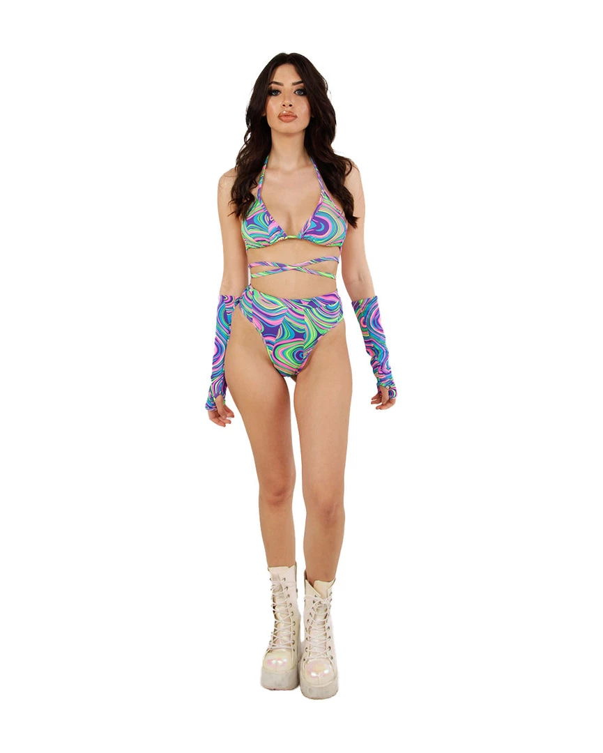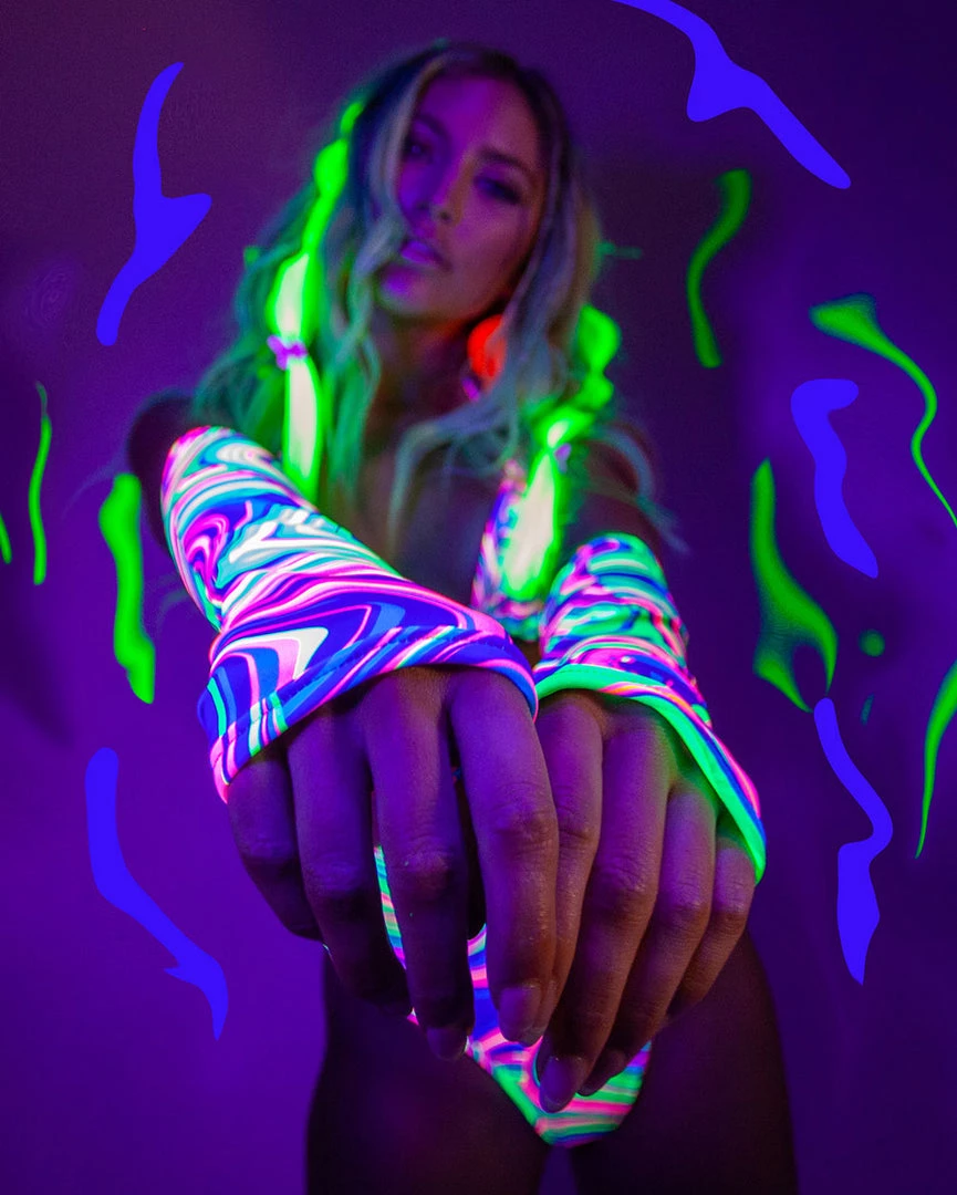 Have euphoric visions in our Sooo Trippy Arm Warmers. These fingerless gloves are the IT rave accessory of the season. Pair with a matching top and bottom to complete the look.