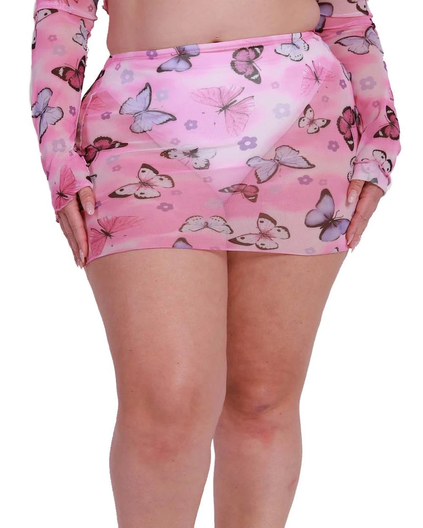 Dainty butterflies and light pops of pastel pink are featured prominently in A Beautiful Fleeting Moment Mesh Mini Skirt. This see-through mini skirt hugs ur curves in all the right places and looks dreamy when paired with its matching top.