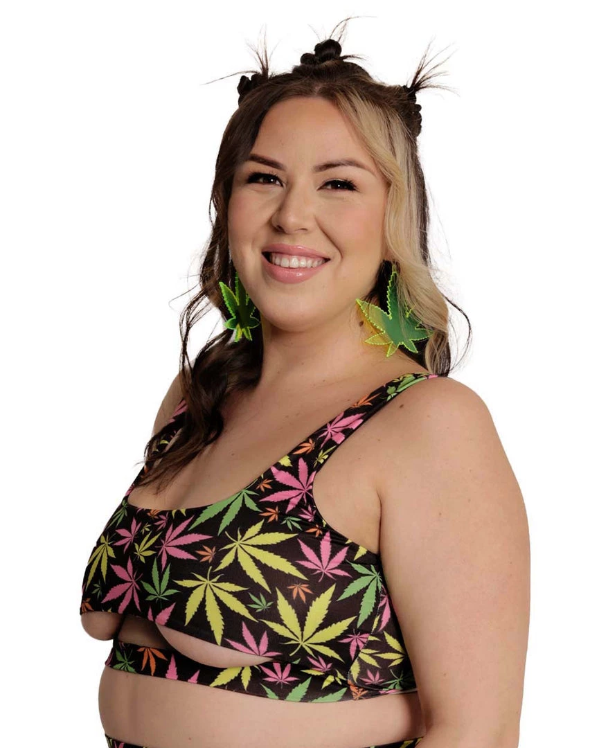 The Perfect High Underboob Top will tell them u party hard. Enough said. This top features a beautiful square neckline, an underboob cutout detail, and an edgy weed print.