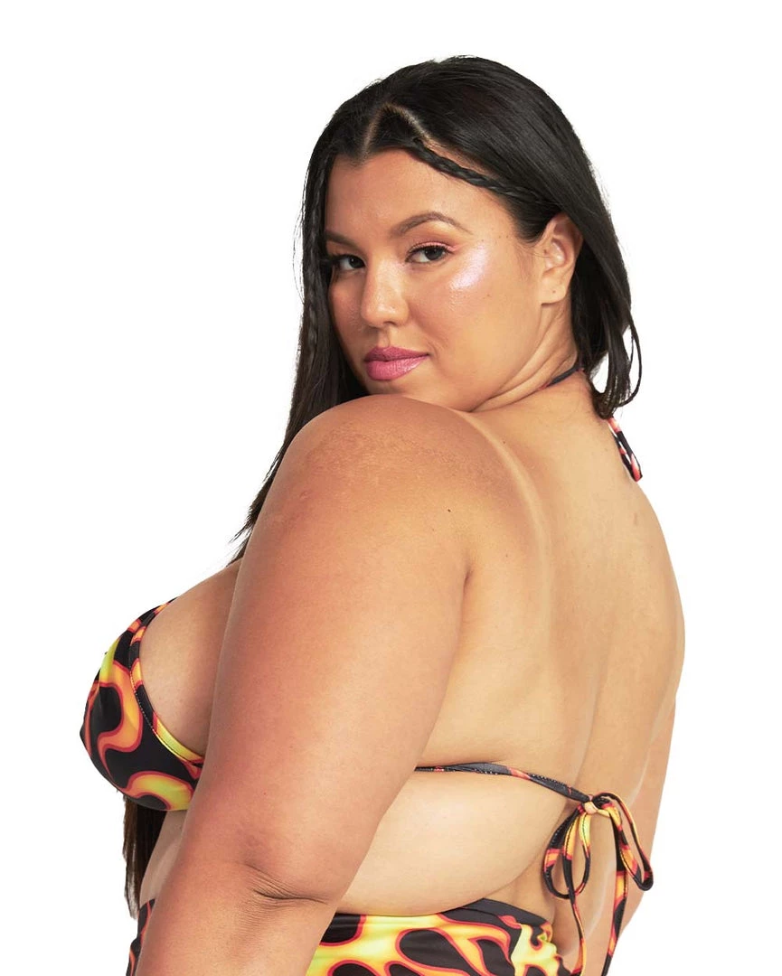 Keep the fire burning with our Hot Stuff Strappy Top. You’ll amp up the energy on the dancefloor with this top that has a plunging neckline, open-back design, and fiery hot print.
