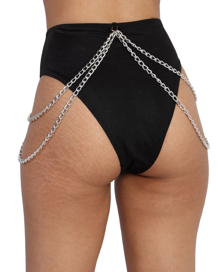 You’re guaranteed to look like the bad bish everyone aspires to be with these Off the Chain High Waist Booty Shorts. These black, high-cut bottoms also have chain detailing on the sides.