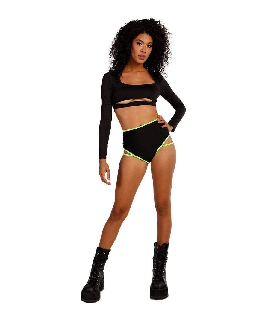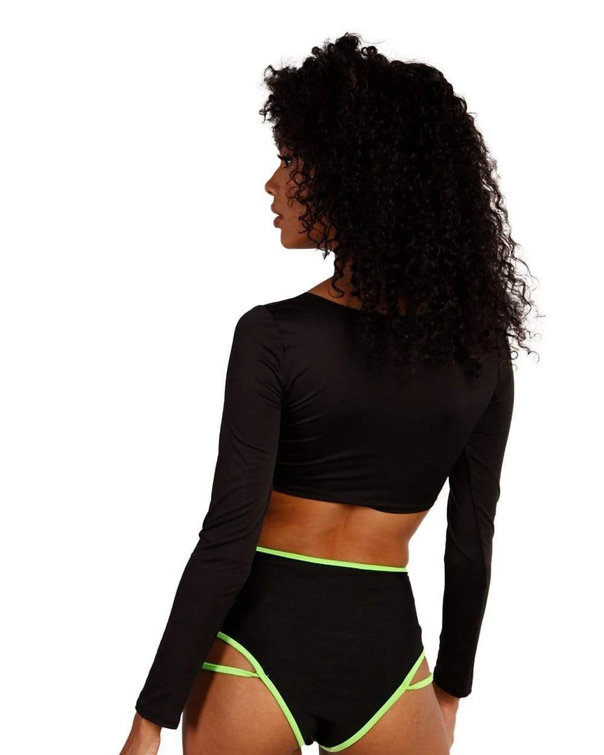 Rock our Always Sleek Underboob Long Sleeve Top because everyone needs a little blacktop. This super stretchy black crop top has a scoop neckline, tasteful underboob cut out with long fitted sleeves.