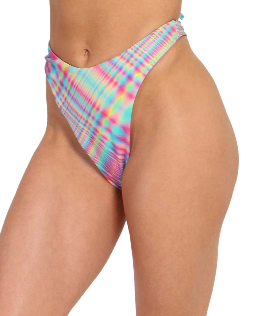 Our Good Times Rainbow Hi-Waist Thong is all about that Y2K vibes baby. Wear these cheeky rainbow bottoms with their matching top to make sure all eyes are on u.