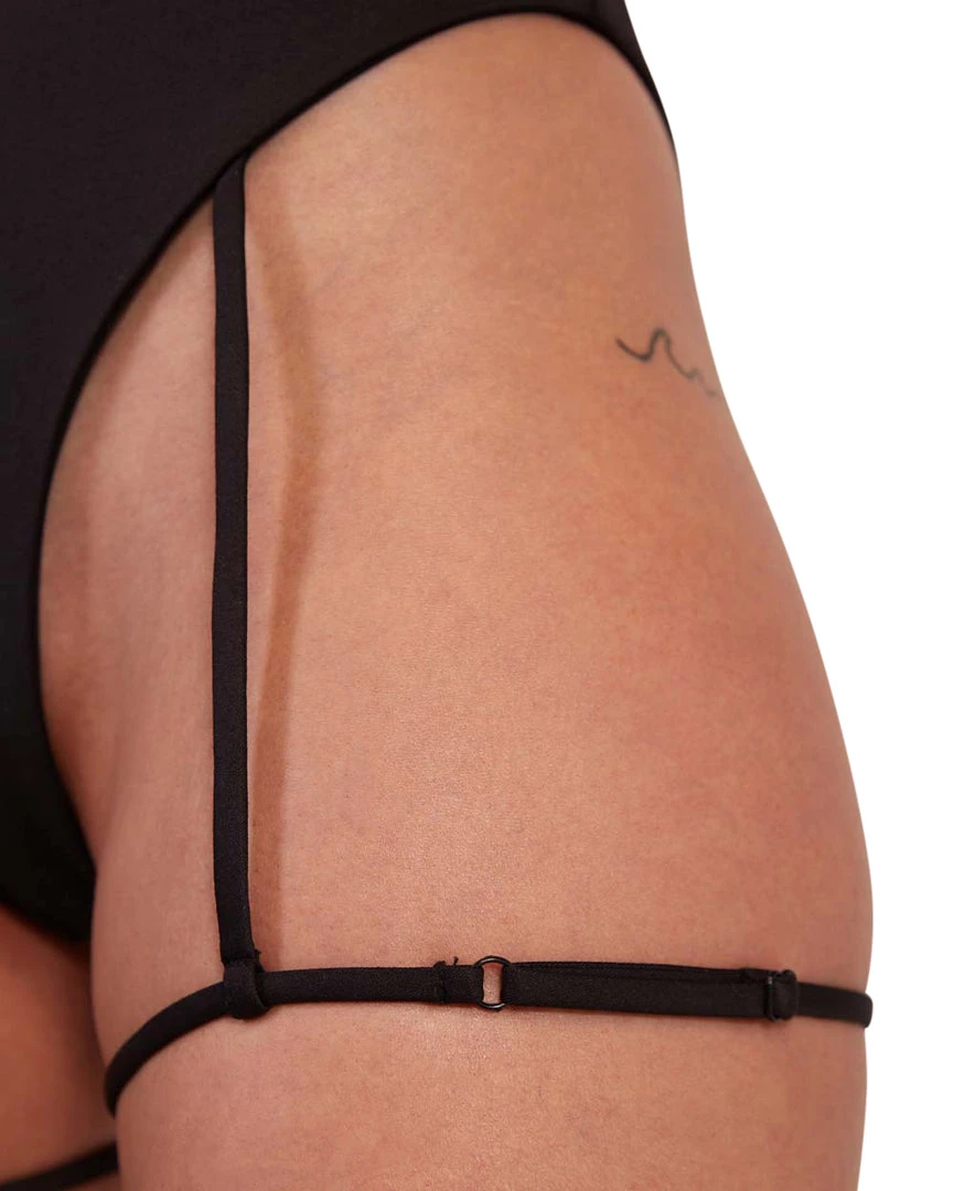 Turn heads in our Smokin’ Hot Deep V Harness Bodysuit. This one-piece has a figure-flattering fit, a deep plunging neckline, cheeky coverage, and a leg harness.