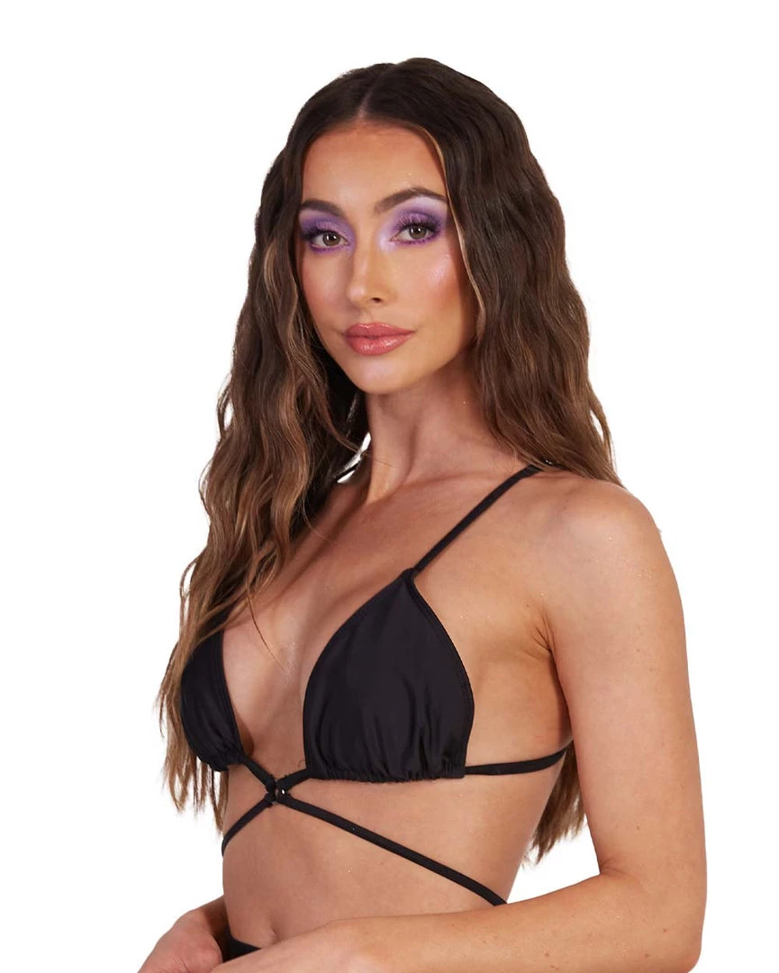 Whether worn on its own or layered with an ultra-crop top, our Recycled Fabric High Demand Hottie Strappy Top is guaranteed to take u places. It features a triangle cut, a strappy design, and an o-ring accent.