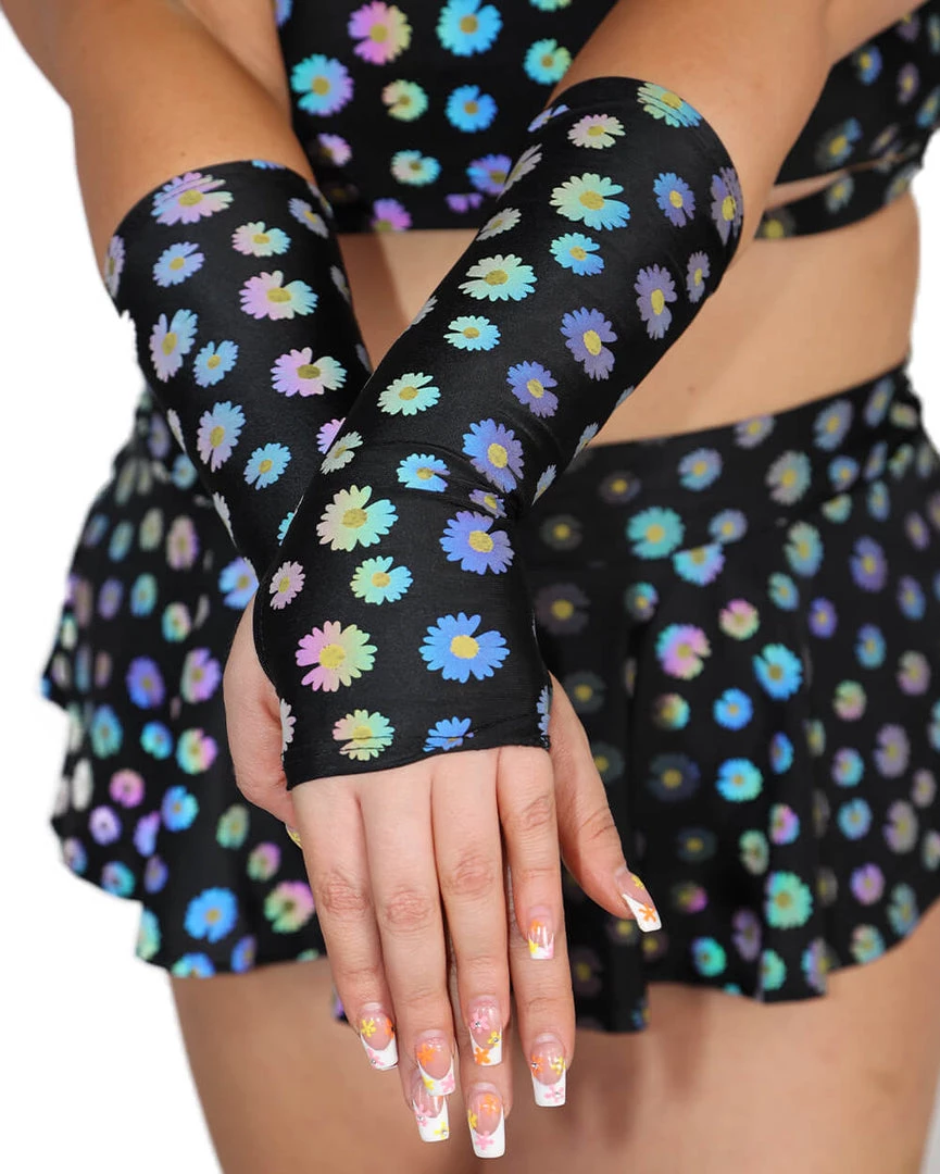 Experience a night to remember with the Crazy Daisy Reflective Arm Warmers. These fingerless gloves feature a beautiful floral print and look amazing when teamed up with its matching top and bottoms.