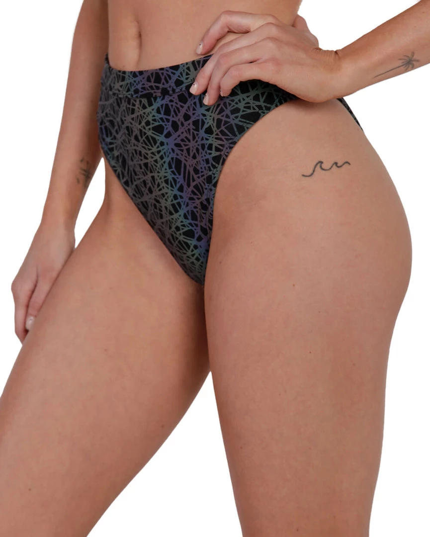 Bring some wavy vibes to ur rave fit with the Trippy Drip Reflective Booty Shorts. These high-waisted bottoms feature a high-cut design and a psychedelic pattern that illuminates under the lights.