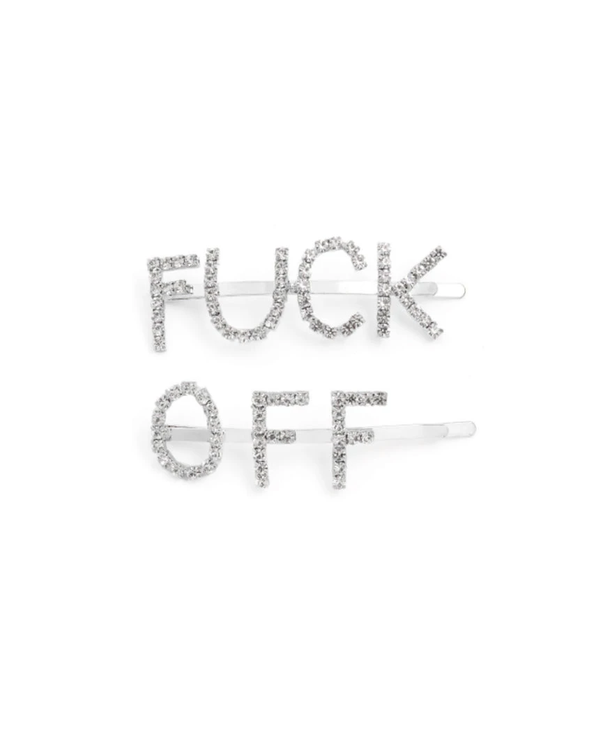Say it like it is with our F* Off Hair Clip. These barrette-style clips spell out “fuck off” and are encrusted with sparkly rhinestones to completely elevate ur hairstyle.