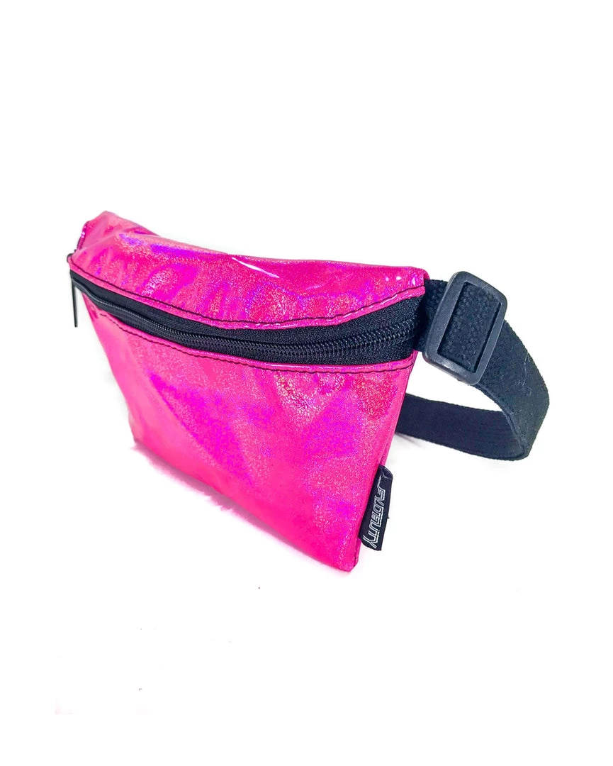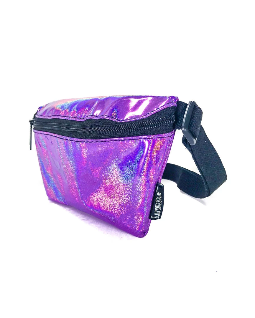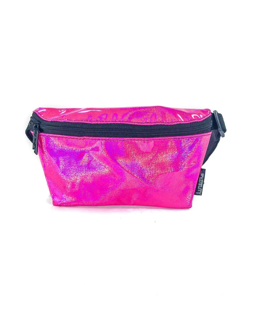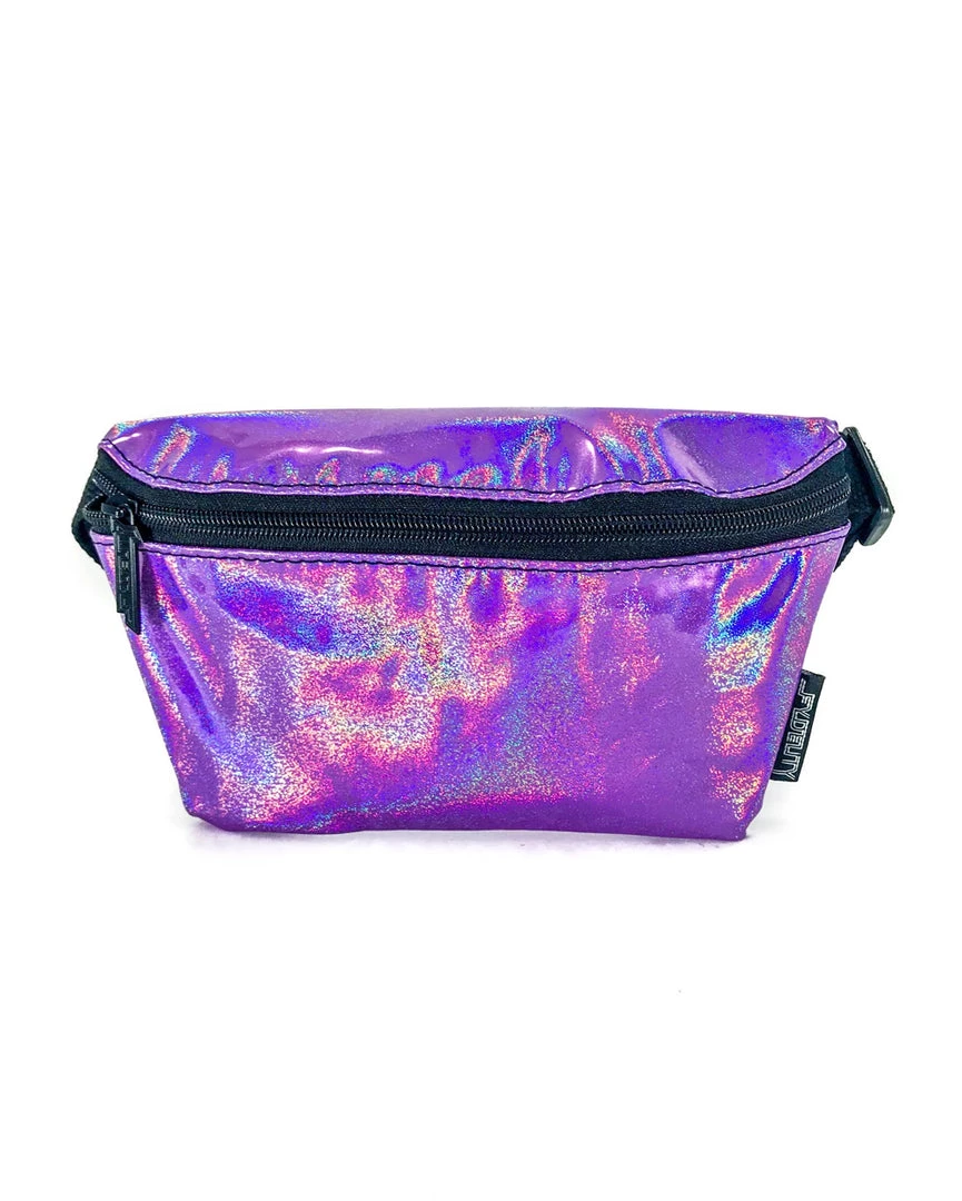 Our Bespeckled in Rainbow Holo Fanny Pack is from a whole other dimension. Available in hot pink and purple, both bum bags feature an iridescent effect that radiates all day.