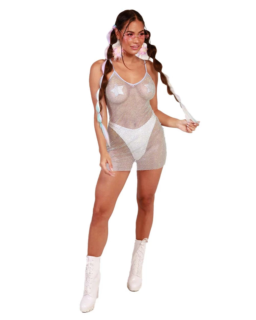 They’ll look at u from top to bottom when they see u looking hot AF in The Real Deal Rhinestone Fishnet Dress. Wear this over a bikini set or ur favorite pasties and you’re sure to get everyone’s attention.