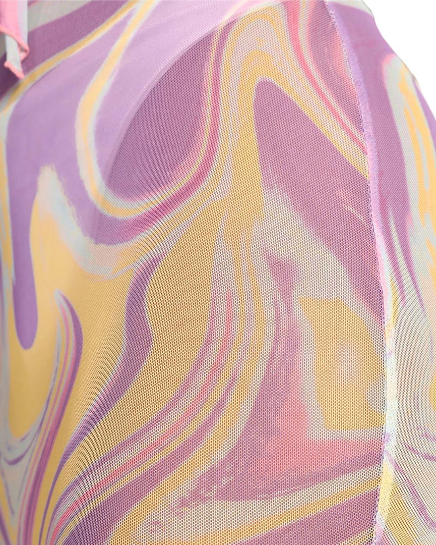 Our Swirls World Mesh Skirt is designed to give u brighter days ahead. This skirt has a multicolor wavy pattern, a high-waisted cut, and lettuce trimming at the bottom.