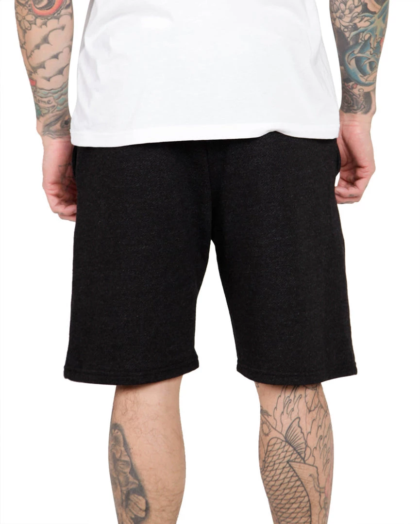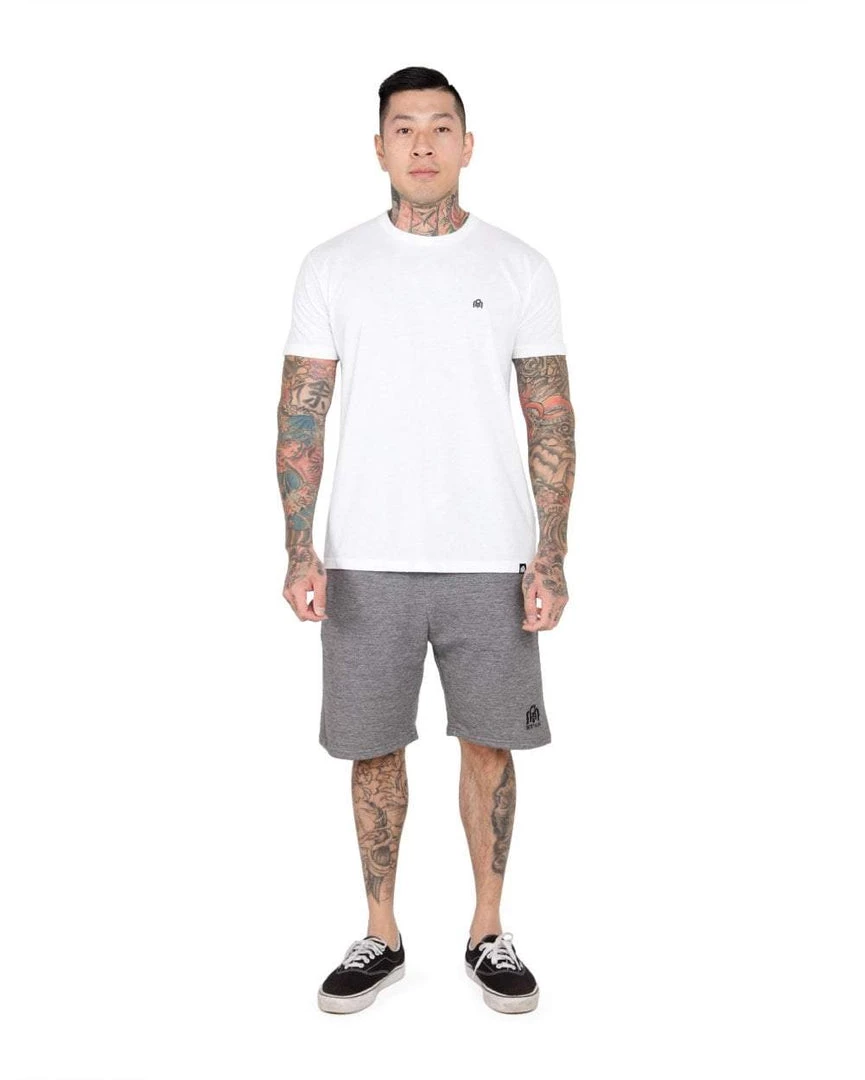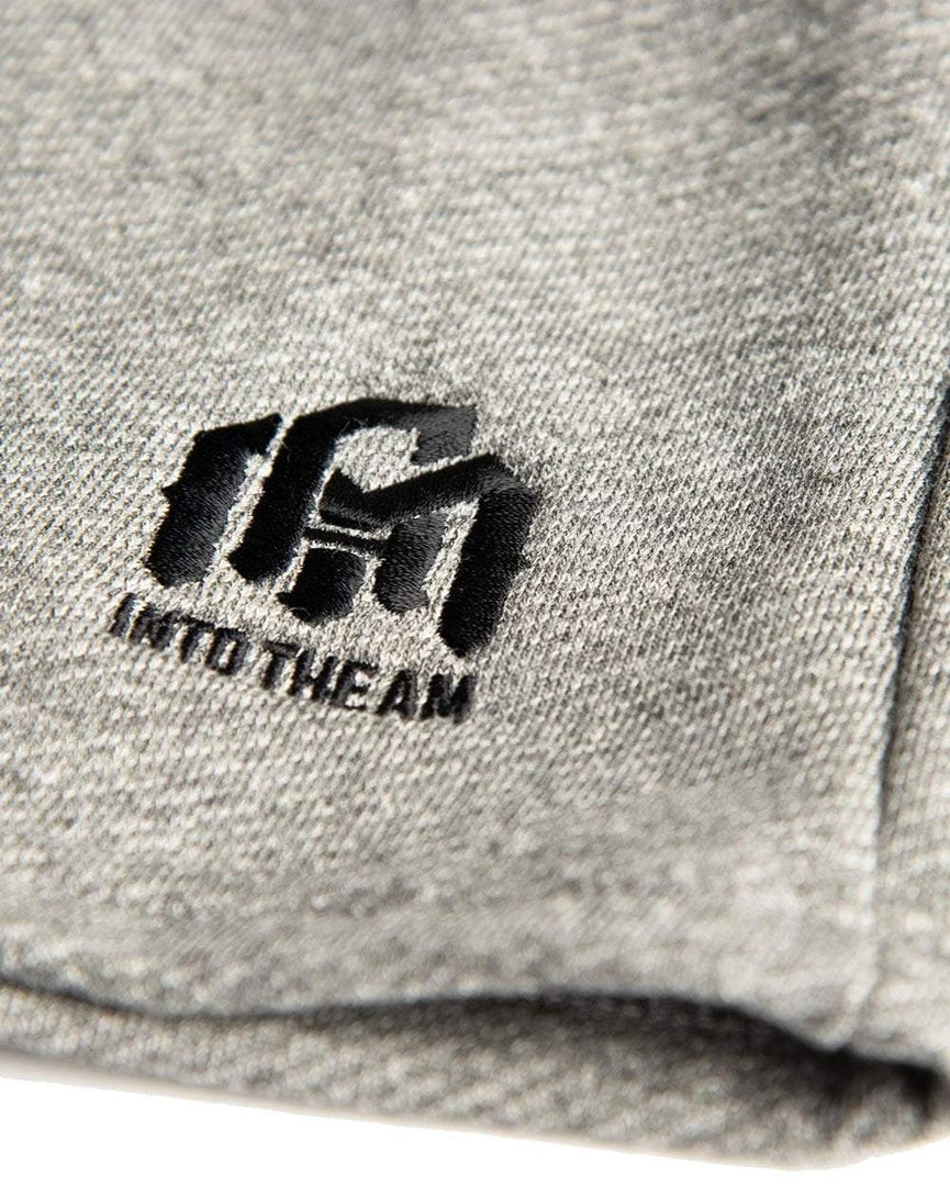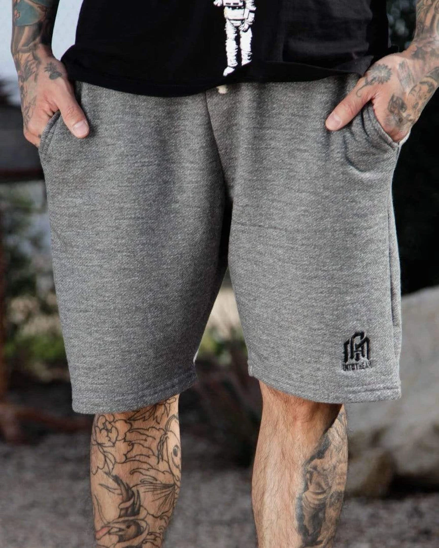 There premium charcoal grey jogger shorts are designed for comfort without sacrificing style. They feature ultra-soft fabric, an adjustable drawstring waist, and a black embroidered AM logo on the left leg.