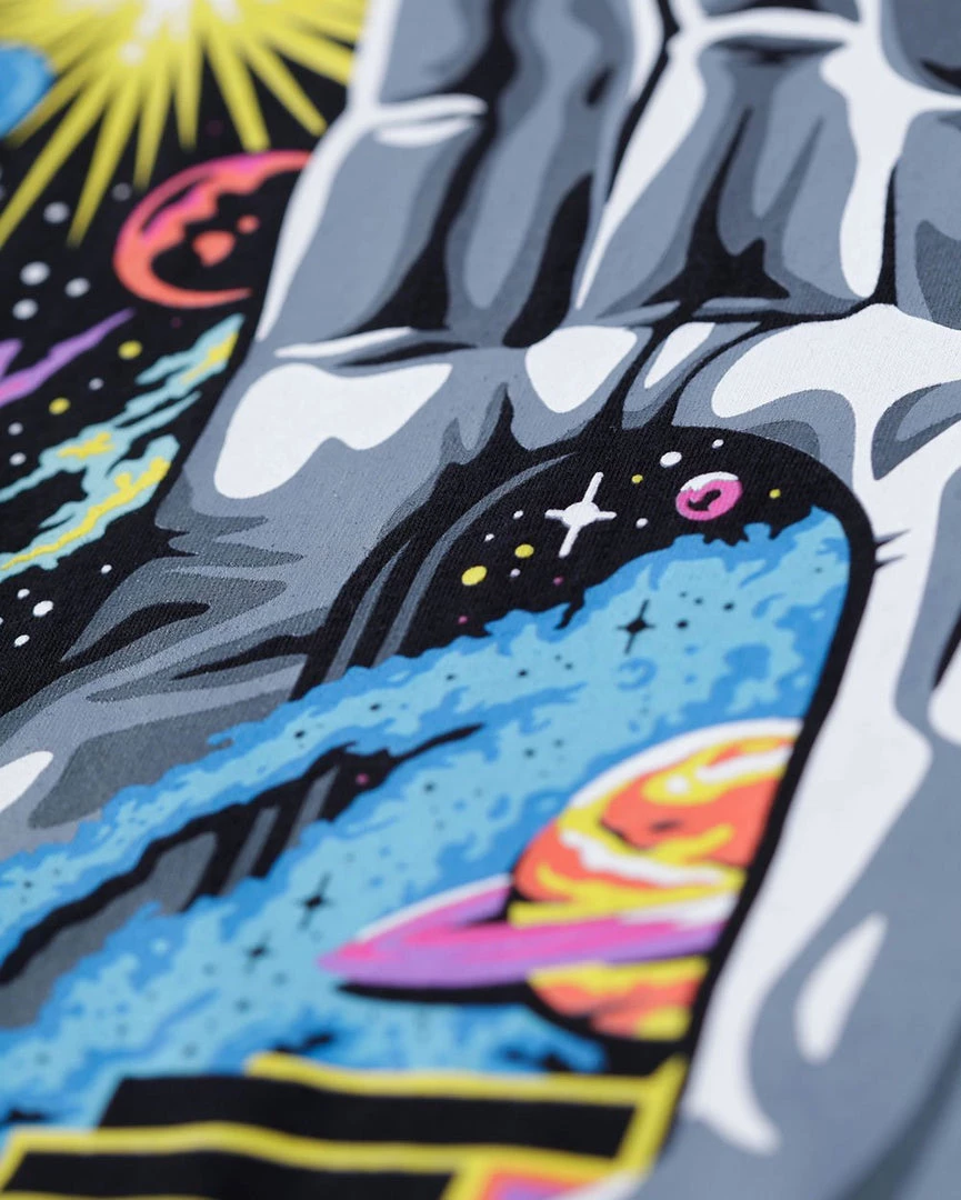 Find the guiding hand of the universe, in this vibrant graphic tee. The moons, stars, planets, and origin of the universe started here. Push through and follow the steps to your destiny with this psychedelic premium tee. It is tailored from ultra-soft fabric and printed with the highest quality inks.