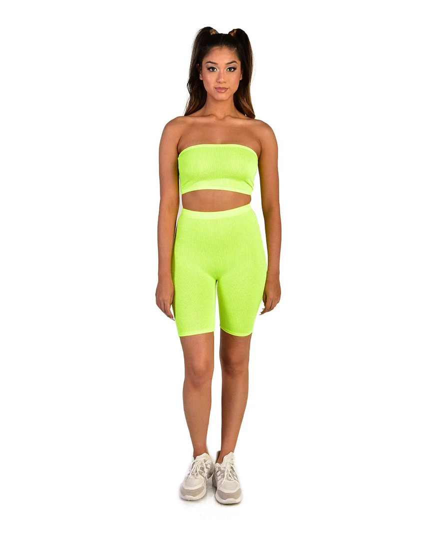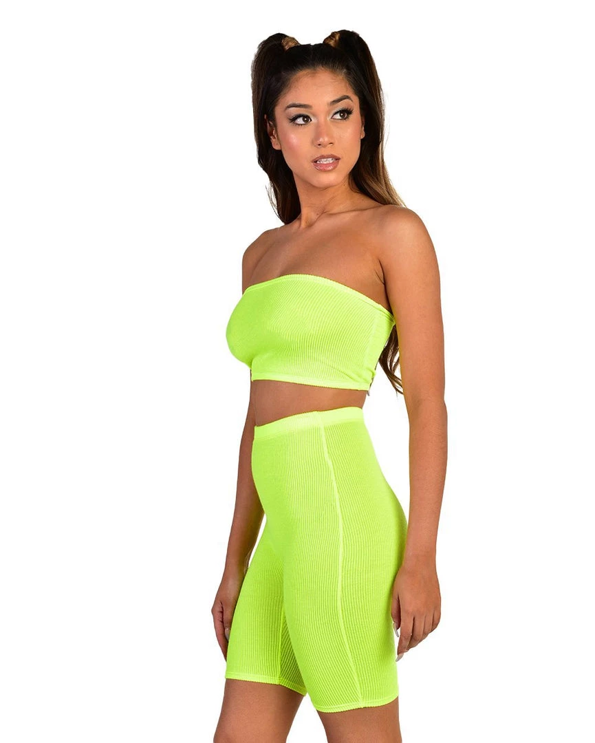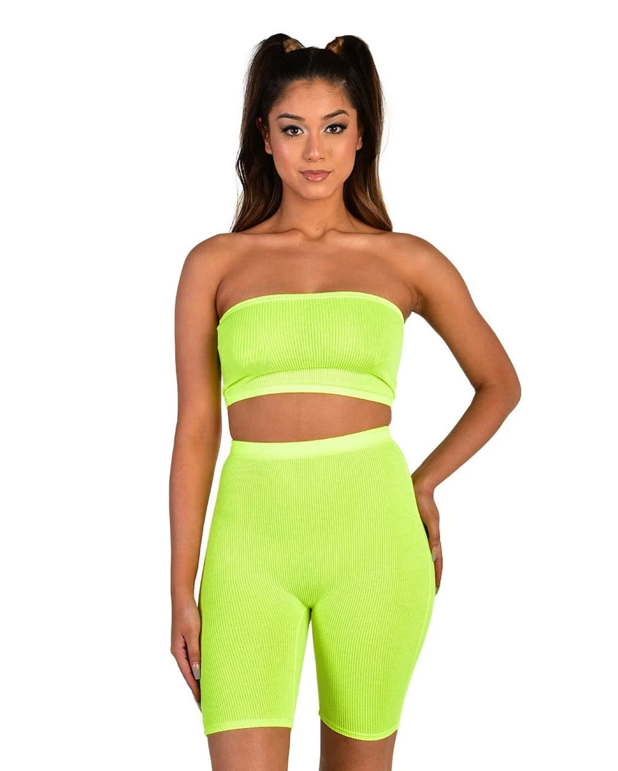 Stay lookin stylish 24/7 in our Casual Friday Biker Short Set. This two-piece set includes a tube top with high waisted biker shorts. This trendy set is form fitting so you can show off.