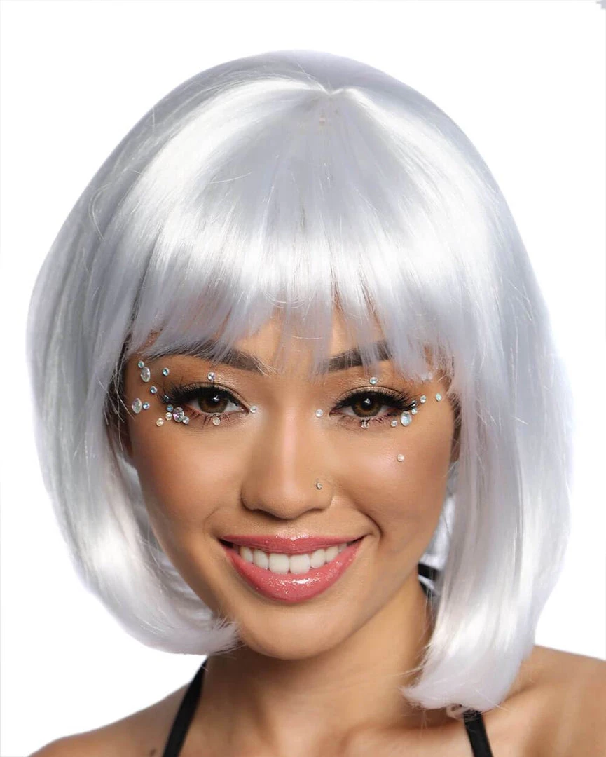 Our Go Go Girl Bob Wig is the way to go if u want to express urself boldly. This platinum blonde wig has a soft and silky texture, it bounces whenever u move. Just imagine wearing this with a holographic bodysuit!