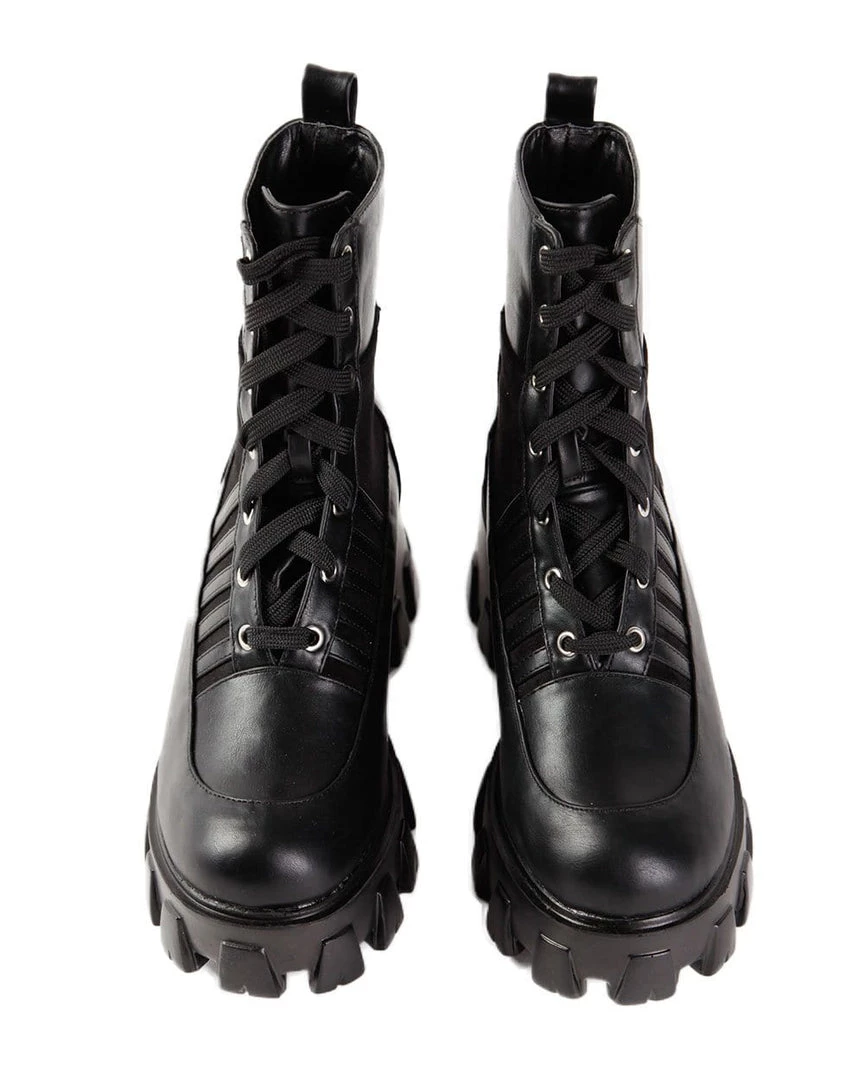 Our Euphoria Magic Holo Combat Boots will give ’em something to stare at. Stunt on ’em in these badass ankle-length booties have thick traded sole, side paneling, and adjustable lace-up closure.