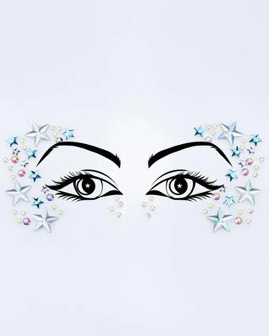 Our Lunautics Astrid Face Jewels will make them see you in a different light. These stunning silver and blue iridescent face gems apply easily with a self-adhesive sticker backing and will give you that fierce festival glow.