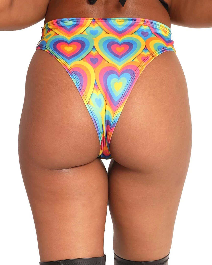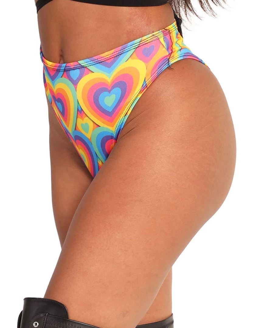 Ur rave bae will want to take u dancing all day with the Lyte Couture x iHR Rainbow Ranger Hi-Cut Thong. They have a high-waisted cut, cheeky coverage, and a stunning rainbow retro heart print.