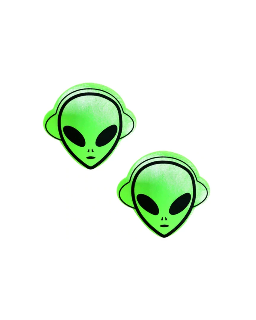 U are an intergalactic rebel so show them who u are with the Neva Nude Kanye The Alien Super Blacklight Pasties. These alien pasties are fluorescent, making them the perfect finishing touch to an edgy all-black outfit.