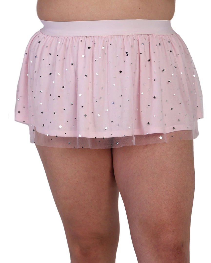 They’ll thank the skies for ur presence on the rave scene when u wear our Lucky Star Mesh Mini Skirt. This flowy skirt comes in pastel pink and lavender and features a mesh layer with pretty stars all over.