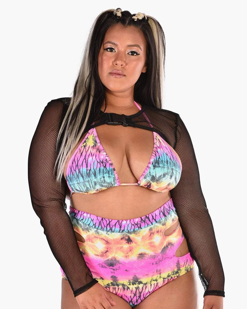 Get ready for a wild trip in our Buckled Down Long Sleeve Crop Top. This sleek black fence net long sleeve has a buckle closure and is the perfect accessory to take your fit to the next level.
