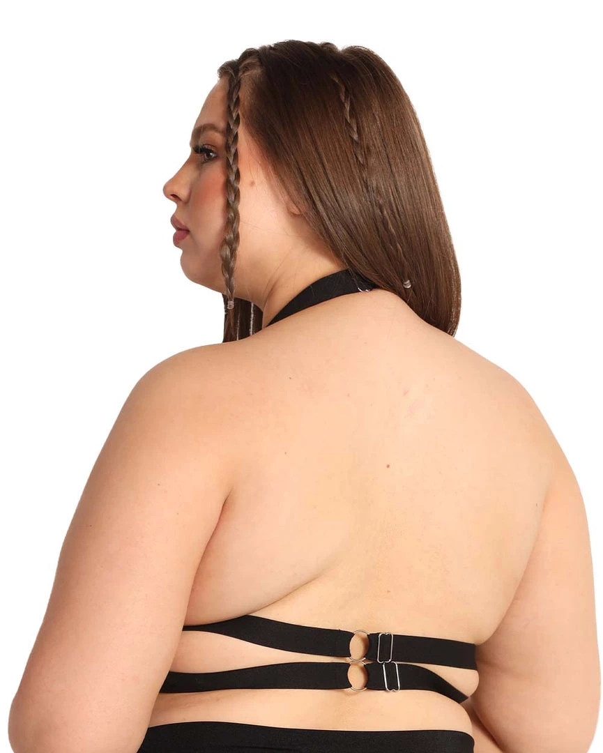 Dare to be bare with the Blow Ur Mind Fishnet O-Ring Bondage Halter Top. This top has fishnet cups that show off ur pasties and are accentuated with o-rings and strappy details all over.