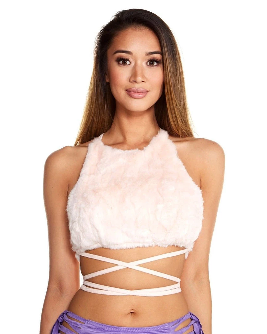Bring out the party animal within and hope around the dance floor all night long! The Fur Wrap Around Halter Top will be the softest and coziest addition to your rave closet!