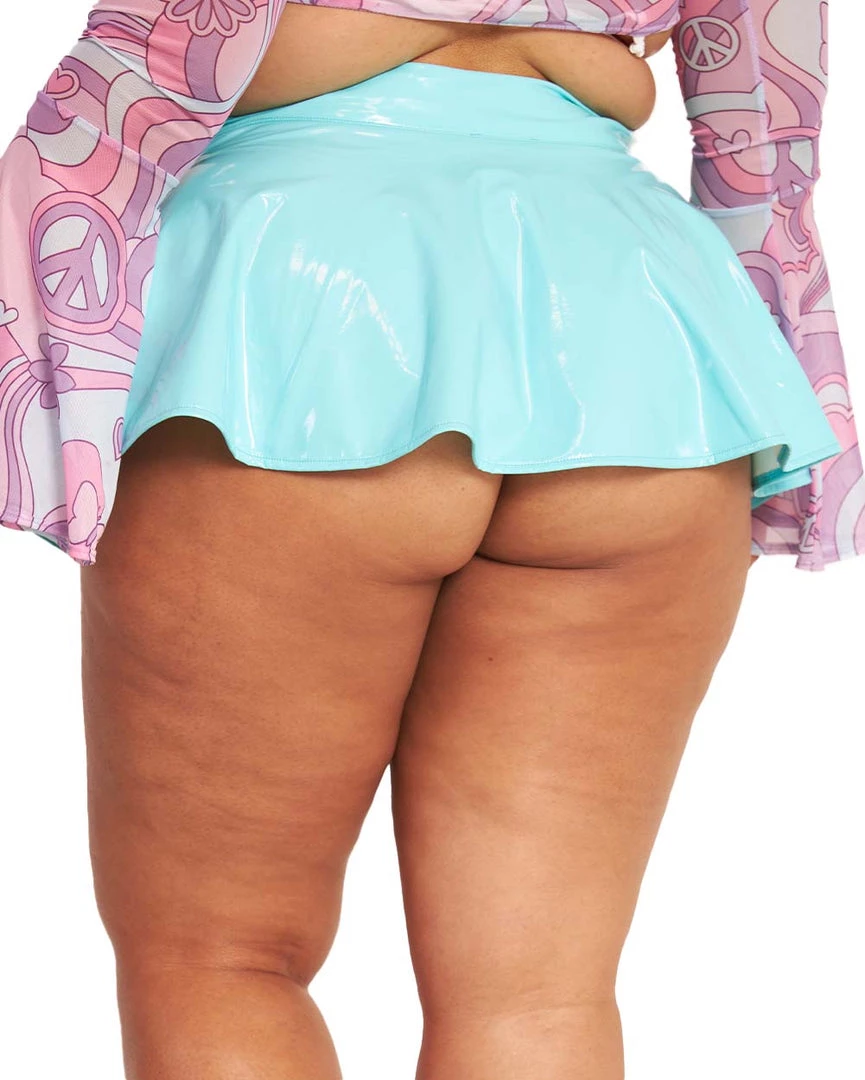 Get that killer look with the It’s My World Vinyl Skater Skirt. This mini skirt comes in black and hot pink and looks bomb AF when paired with its matching crop top.