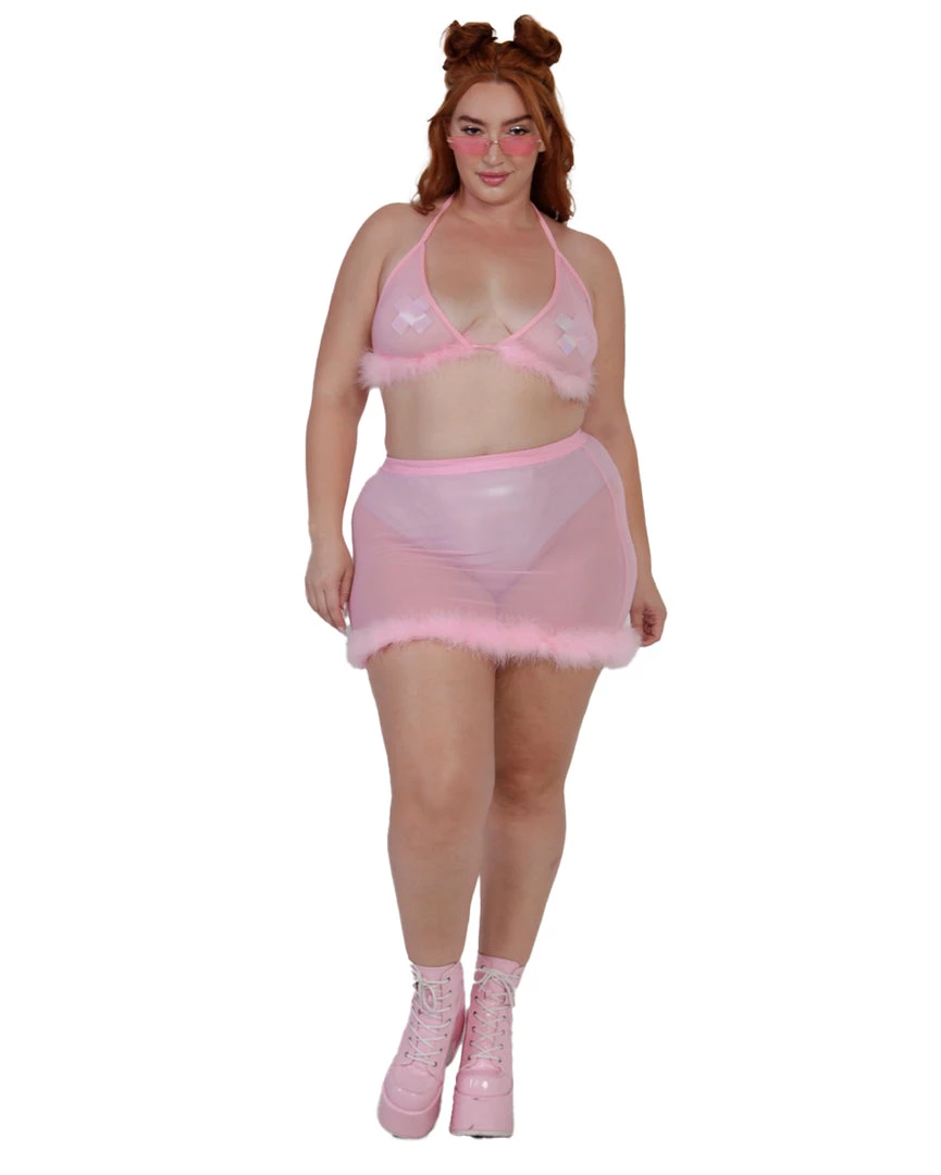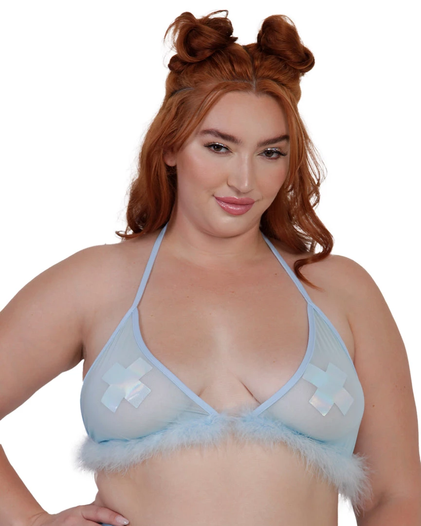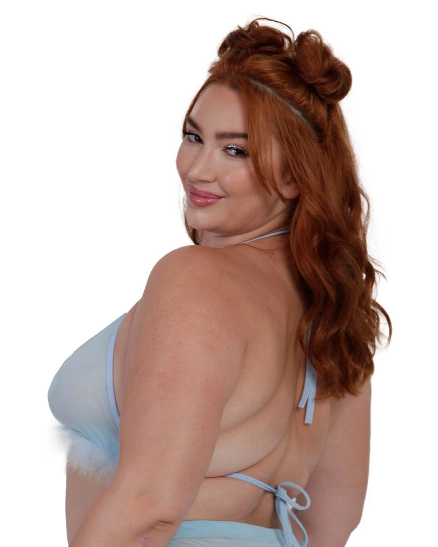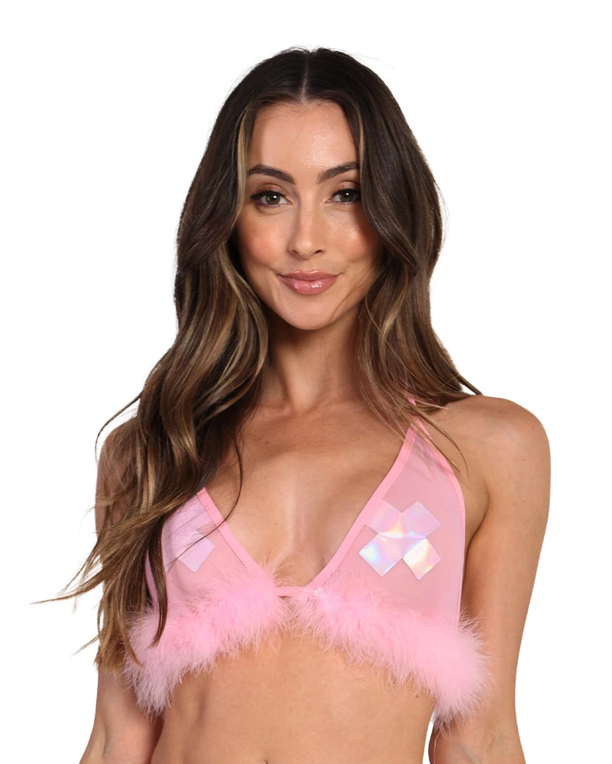 Look fabulously flirty in our Keepin’ It Cute & Fluffy Triangle Top. This black bralette features skinny straps, triangle cups, and faux fur detailing making it look adorable AF.