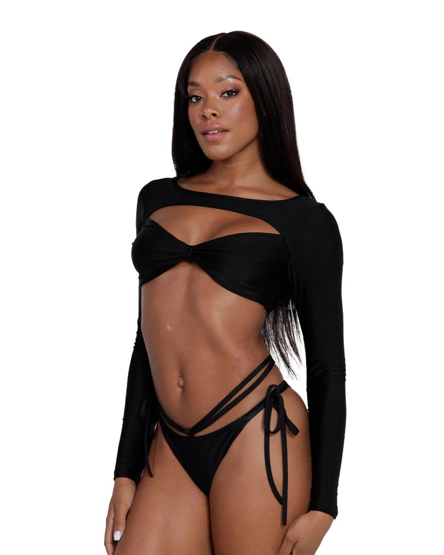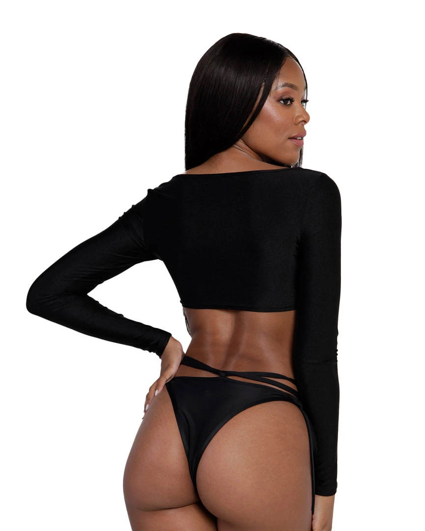 Show ur wicked side in this Never On The Down Low Ultra Crop Top. This black crop top is best paired with any of our reflective bottoms and skirts. No matter how u style it, this top will have u roaring with confidence.