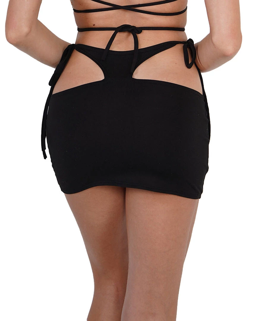 Serve Y2K realness with our On the Prowl Mini Skirt. This mini skirt features cutout thong details, side ties, and a cheeky booty length and comes in black or baby pink.