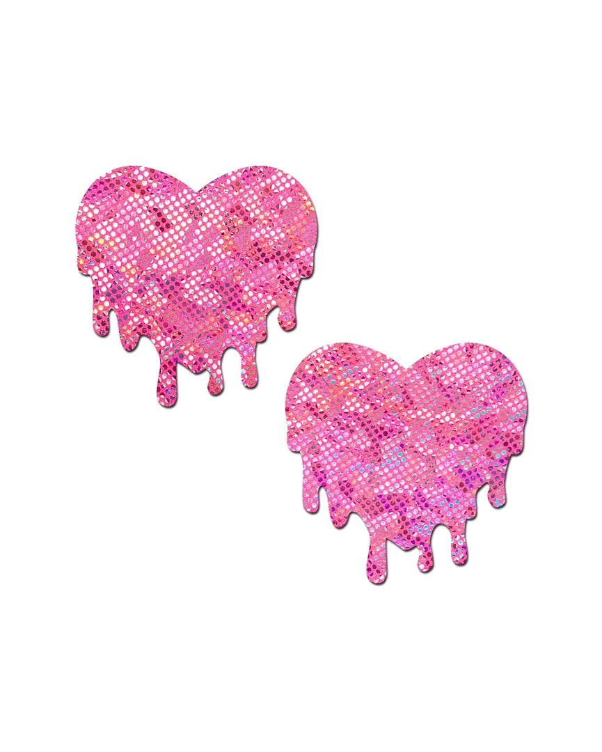 Dance your life away under the stars with our Pastease Chemical Love Glitter Pasties. Wear these melting pink heart pasties with a mesh top or on their own. Cause who needs a top at a festival, right?Â