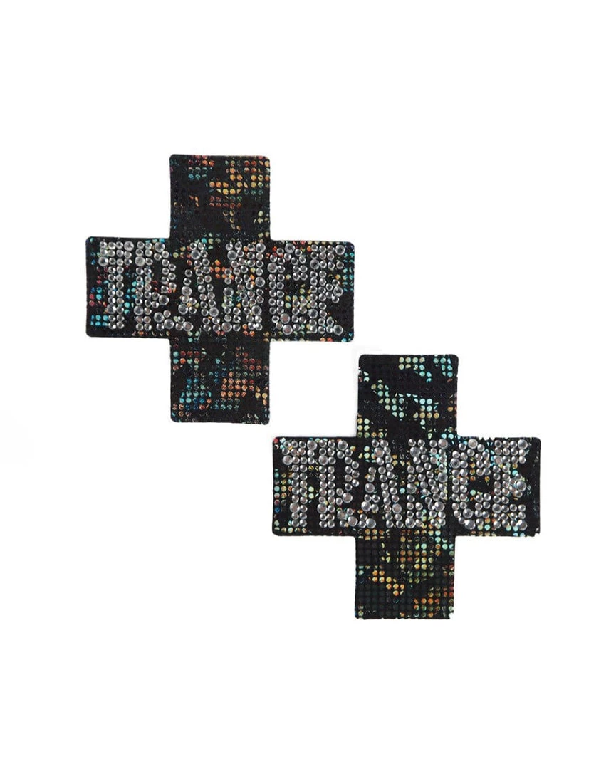 All the trance angels need our exclusive Pastease x iHR Trance Angel Crystal Pasties! These fabulous black cross pasties feature a subtle rainbow shine and rhinestone TRANCE letters to let everyone know where ur heart lies.
