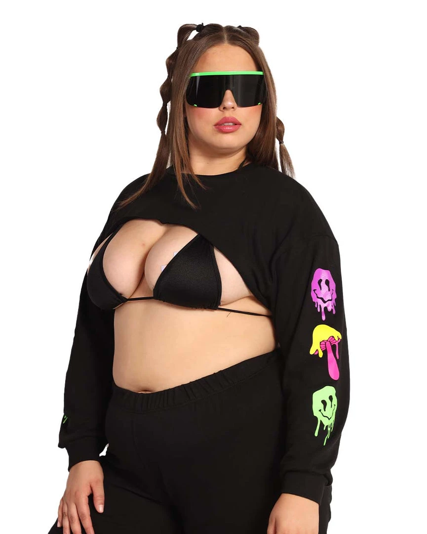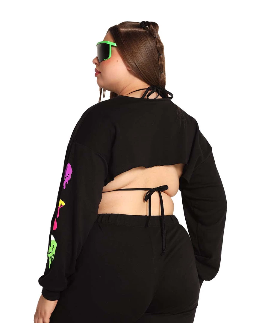 Shuffle to ur heart’s content with our For the Culture Ultra Crop Top. Made from a cotton/poly blend, these pants are super comfortable for all-day wear. It has a striking melty neon print on the sleeves that pair perfectly with its matching joggers.