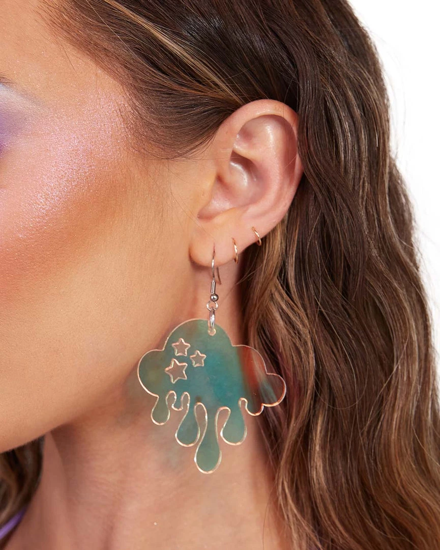 Our Lunita x iHR Cloud Nine Earrings are sure to make ur day sunny and bright. These lightweight acrylic earrings come in iridescent and mint, both of them accented with a melting design.