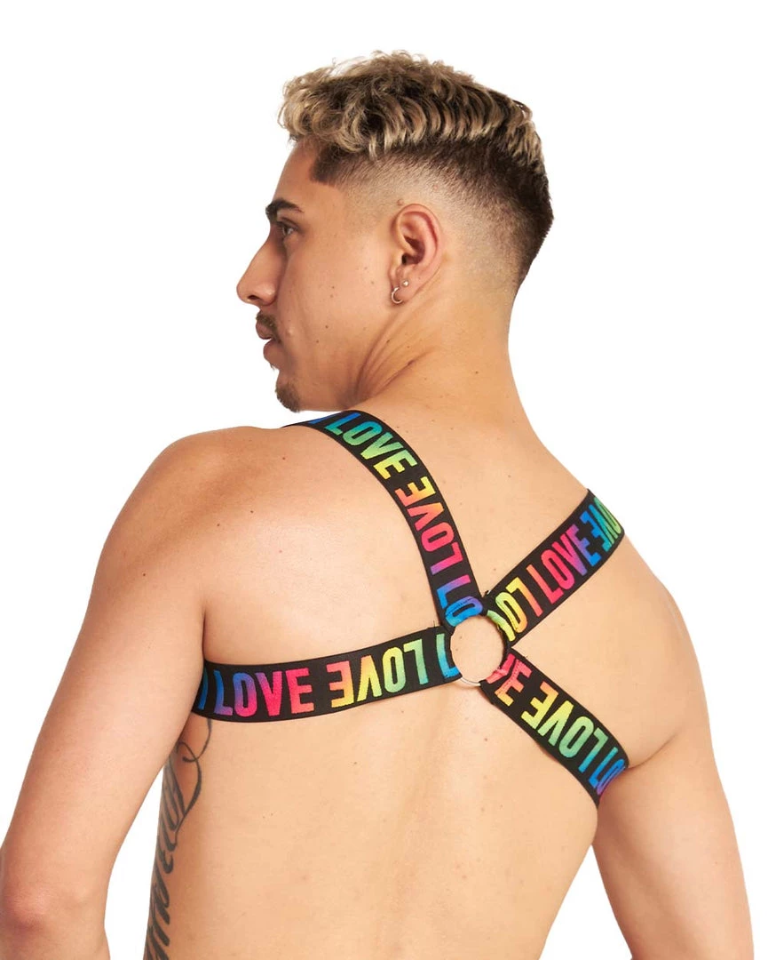 You’ll def raise a few eyebrows with our Roma Rainbow Disco Chain Harness. This harness is made from a breathable, stretchy material that features double layers of silver chains and a rainbow band that spells out “love.”