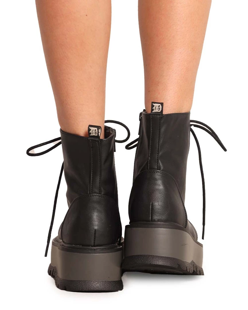 Stand tall in these Demonia Mystery Solved Lace-Up Boots. Wear these all-black boots with any of our bodysuits or skirt sets for a look that’s show-stopping.