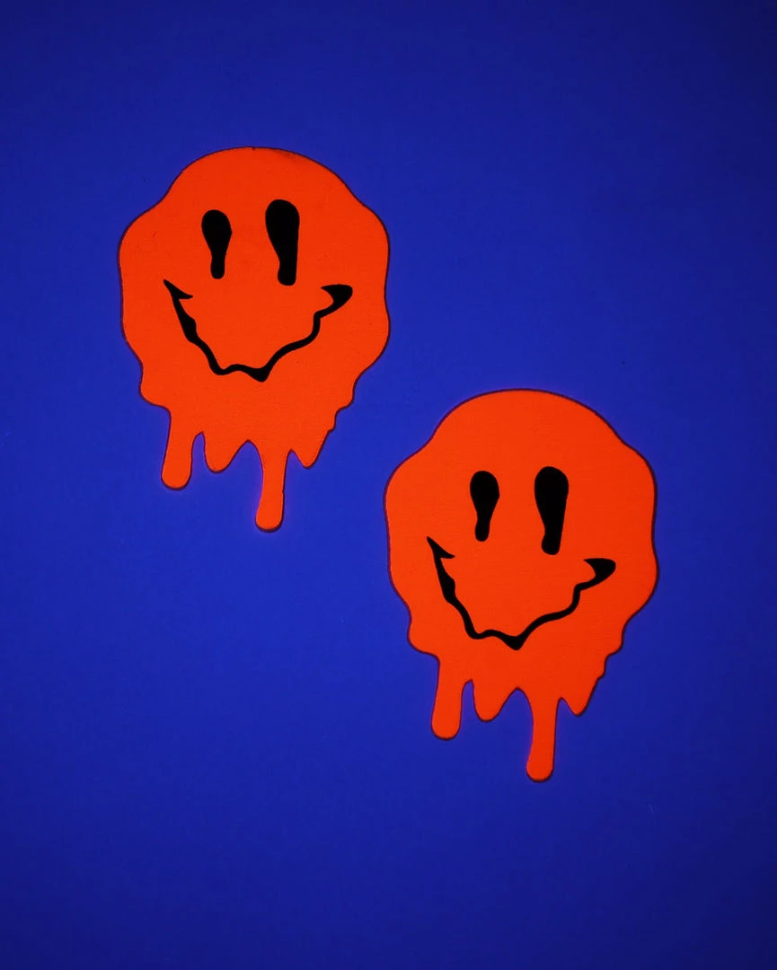 Complete ur techno look with the Neva Nude Neon Melty Smiley Pasties. These smileys are the ultimate accessory for ur upcoming rave event as they glow up brightly in the dark.