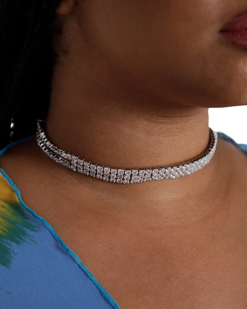 A Glimpse of the Cosmos Choker is studded with brilliant rhinestones so you can shine in the dark. Rock this two-layered necklace with any of our rave lingerie sets or fishnet bodysuits.